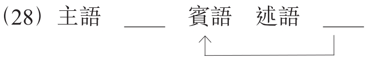 述語移位的假設也可以用來解說粵語和普通話處置句的差異。要形成處置句,首先,賓語離開原來的位置,移動到述語前,這個位置夾在代表“謂語 1 ”的空位“_”和代表“謂語 2 ”的述語之間,如(28)所示。 3