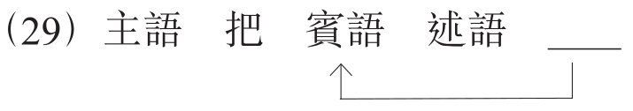 假如代表“謂語 1 ”的空位被“把”所填充,如(29),賓語就出現在“把”之後,述語之前,形成普通話處置句的詞序:“主語+把+賓語+述語”。