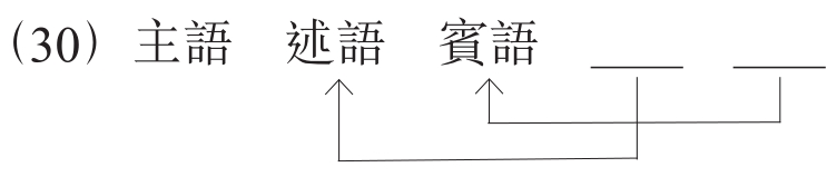 假如粵語述語一定要移動到“謂語 1 ”的層次,如(30)那樣,可以提供給“將”的空位已被移前的述語填補了,“將”也就因而無法插入。賓語移位後,述語再往前移動,跨越了賓語,(30)所形成的句式,依然是“主語+述語+賓語”,這是粵語處置句的常態詞序。