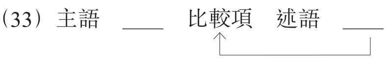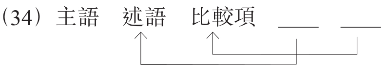 要形成差比句,第一步是把原來位於賓語位置的比較項移到述語之前,如(33)那樣。圖中的空位“_”屬於較高的“謂語 1 ”,而述語所處的層次屬於“謂語 2 ”。夾在“謂語 1 ”和“謂語 2 ”的這個位置,跟比較意義有關(Xiang 2005,熊仲儒2007等),預留給比較項,讓比較項得到合理的詮釋。